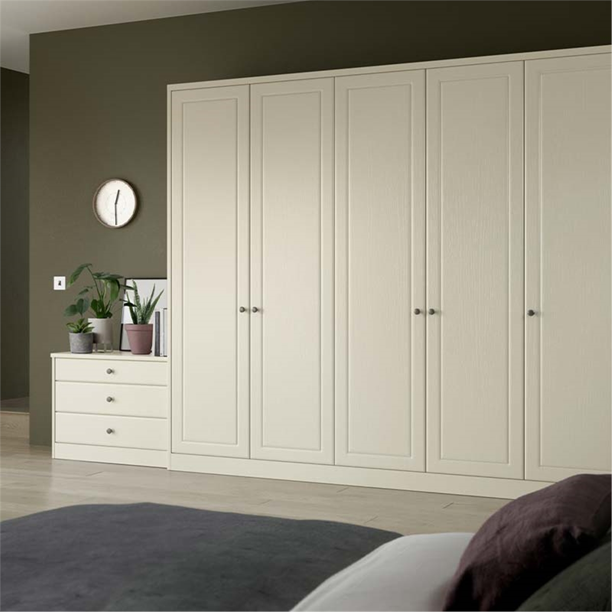 - Grained Finishes: drawer fronts the grain runs horizontal, on cupboard and wardrobe doors the grain runs vertically